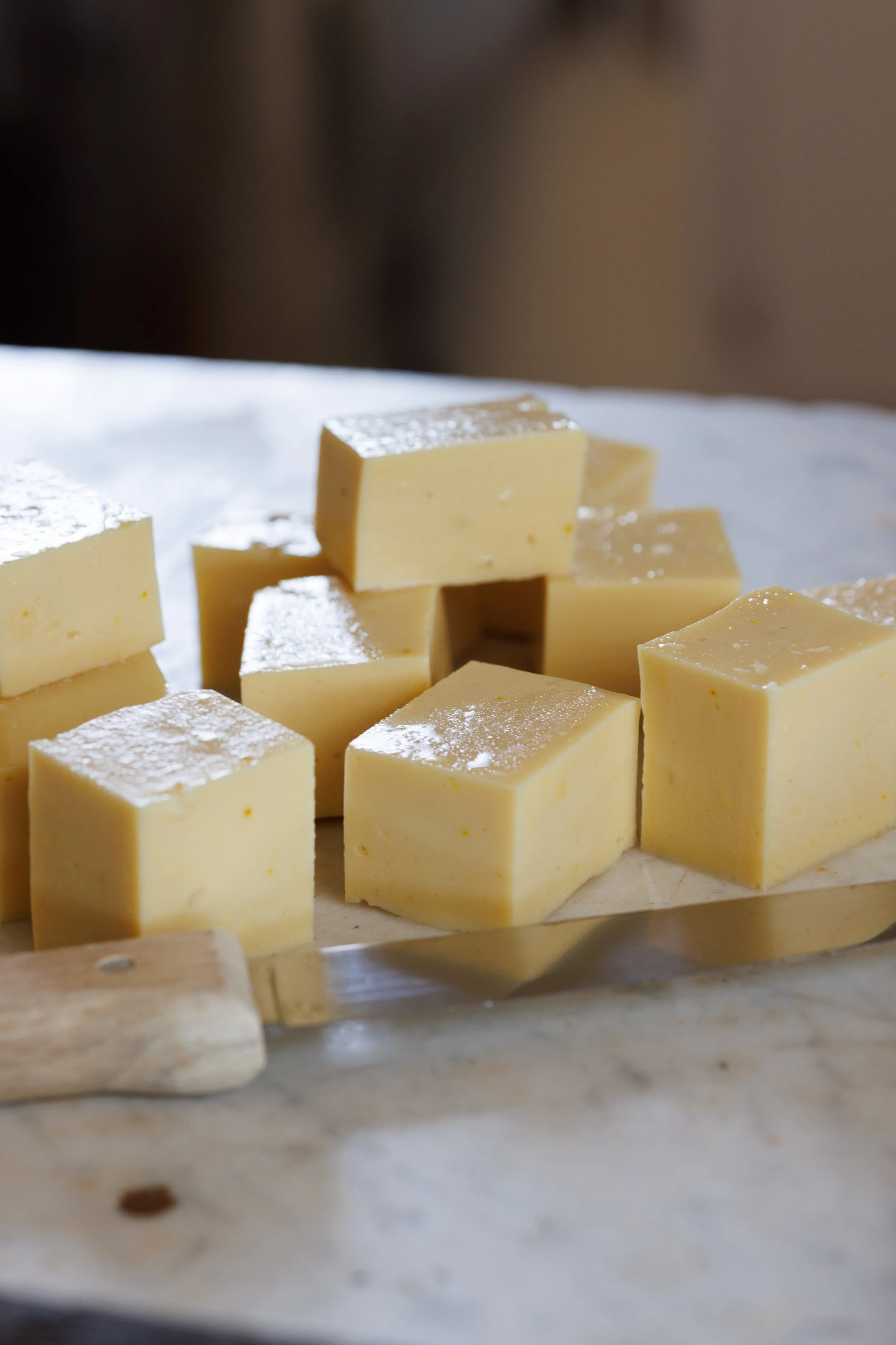 Once the chickpea tofu is firmed up, you can cut it into pieces and use a spatula to remove from the tray. Enjoy it as you would traditional soy based tofu - in burgers, baked into fingers, in miso soup, in sushi or curries.